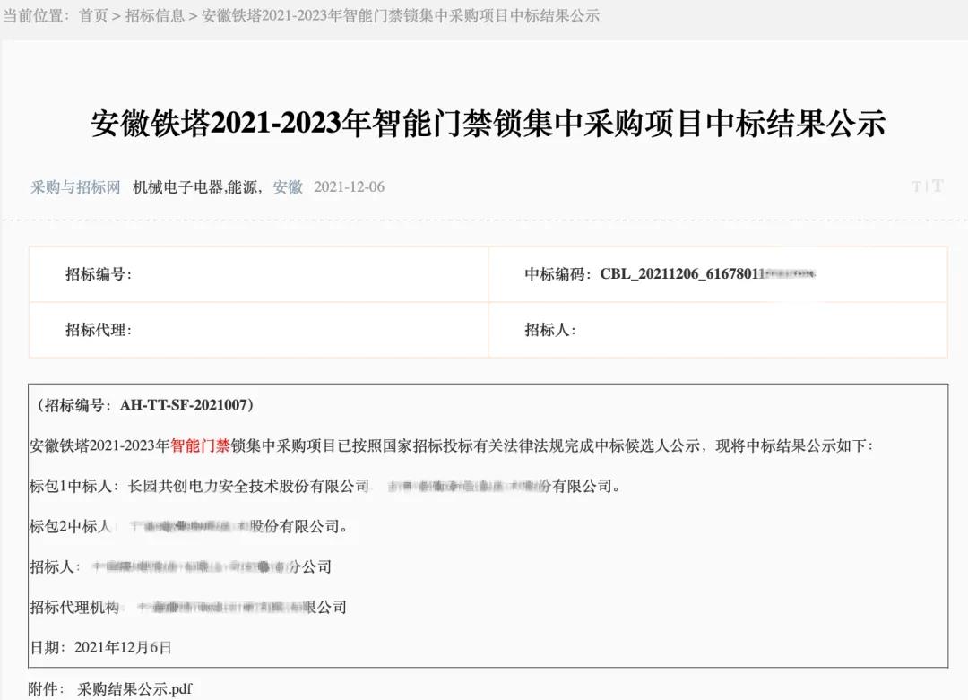 本次中标安徽、江西铁塔智能⻔禁项⽬,体现了客⼾对⻓园共创在通信智能运维领域创新能⼒的肯定,再次体现了客⼾对⻓园共创产品及服务的认可。未来,⻓园共创将持续创新突破,加强企业竞争⼒,助⼒⾏业和⾃⾝⾼质量发展。